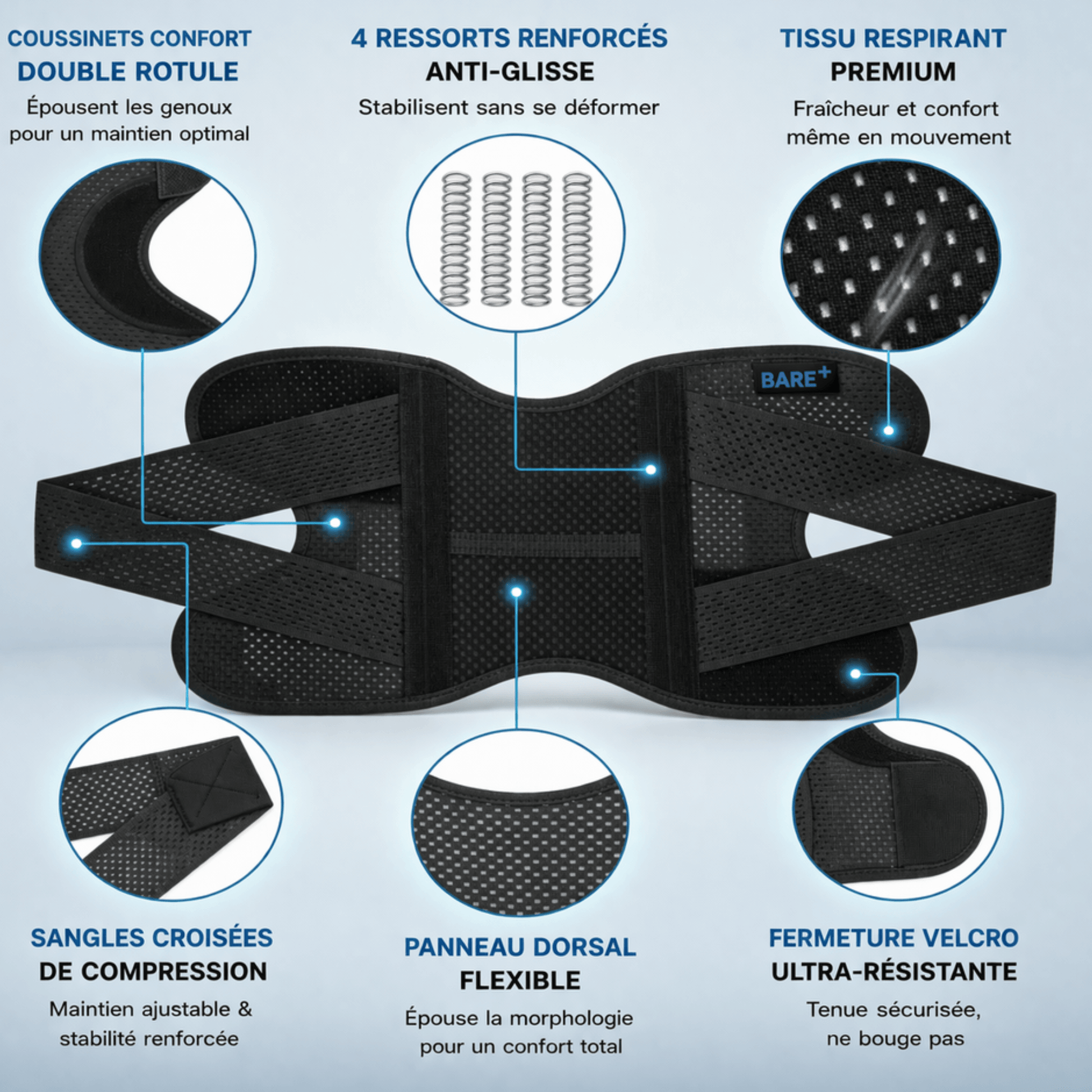 Le maintien d’une attelle classique, sans rigidité ni gêne, pour bouger librement au quotidien.