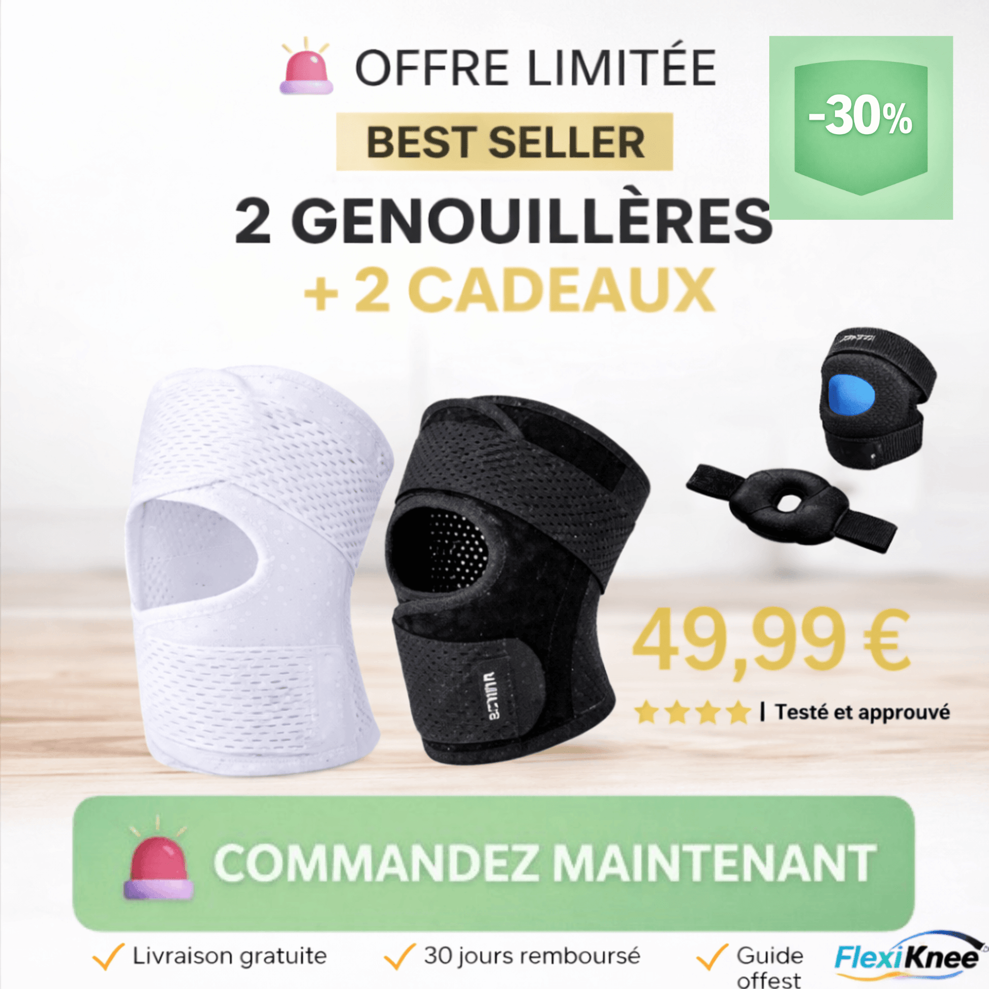 1x Genouillère FlexiKne®•1x Guide d’utilisation rapide